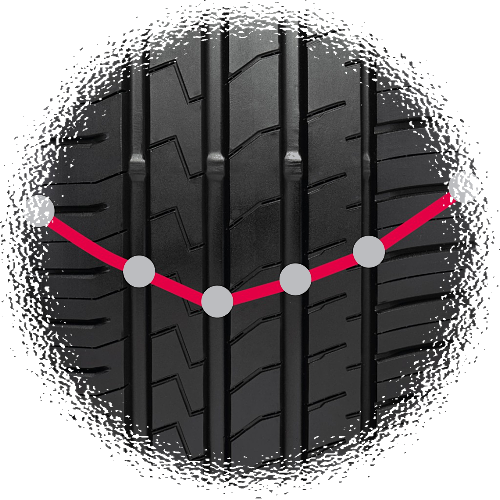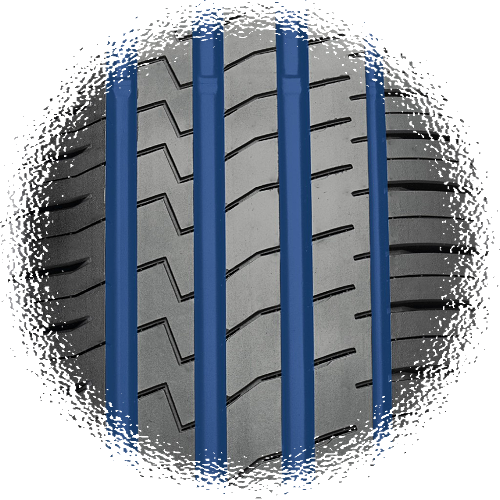 Technologia, która pozwala zwiększyć wydajność opony: Wysoki poziom stabilności kierunkowej, zwiększona przyczepność we wszystkich kierunkach, z dodatkową zaletą równomiernego zużycia |